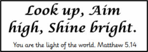 “Look up, Aim high, Shine Bright,” (which is linked to our Bible verse) is displayed in the entrance way, the hall and in every classroom. This is discussed with the children within all that they do.